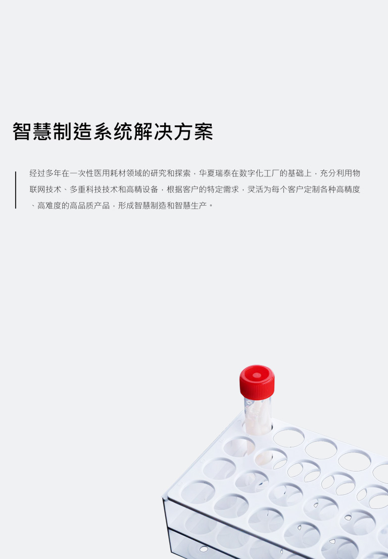 江蘇華夏瑞泰醫(yī)療器械有限公司成立于2013年,公司坐落于江蘇省泰州市姜堰區(qū)現(xiàn)代科技產(chǎn)業(yè)園內(nèi)。是從事一次性實(shí)驗(yàn)室檢驗(yàn)耗材、醫(yī)療器械、細(xì)胞培養(yǎng)、分子生物耗材及實(shí)驗(yàn)室輔助儀器研發(fā)與生產(chǎn)的企業(yè)。主營離心管、植絨拭子、細(xì)胞培養(yǎng)皿、病毒采樣管、一次性使用病毒采樣器、一次性使用真空采血管、唾液采集器等產(chǎn)品,公司占地30000平方米,擁有標(biāo)準(zhǔn)廠房、完善的生產(chǎn)設(shè)備、良好的生產(chǎn)環(huán)境和一批高素質(zhì)的生產(chǎn)、技術(shù)、管理人員,并形成了完整的品質(zhì)全面保證體系。